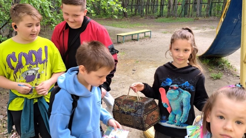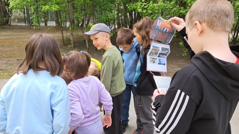 Начальной точкой поиска стала Открытая гостиная, где ребята узнали: что такое широта, долгота; как правильно читать географические координаты; как искать места по незамысловатым цифрам; как найти на карте место тонущего корабля. Подсказкой стало произведение Жюля Верна «Дети капитана Гранта»: в книге герои романа искали землю по указанным географическим координатам, найденным в бутылке. После интересного и поучительного рассказа участники нашли бутылку с картой и координатами. С этого и начались их приключения, только их ждал не остров, а сундук с «золотыми монетами». Что бы добраться до него нужно было пройти по всем заданным точкам с помощью GPS-навигации и разгадать литературные задания, находившиеся в сундуках. Задания были самые разные: кто написал представленные произведения? Сколько героев в сказке «Теремок»? Узнай автора по фотографии и другие.