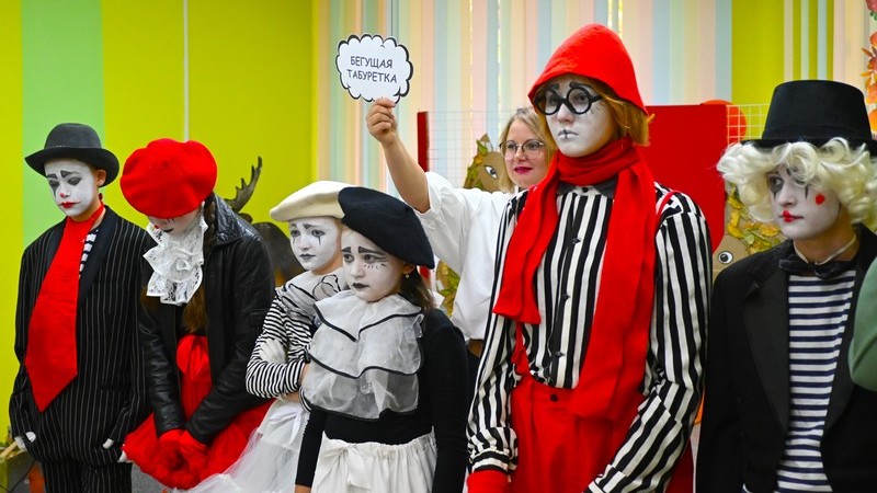 Ребята увидели выступление очаровательных мимов театральной студии «ТаланТы» под руководством заведующей отделом культурно-досуговой деятельности МАУ МГЦК Мироновой Л.М. Они чем-то похожи на клоунов, но жанр представлений совершенно иной, называется пантомимой. Детям очень понравилась необычность представления, ведь им пришлось угадывать, что же происходит на сцене! А потом артисты и зрители поменялись местами. И уже актерам пришлось отгадывать каверзные словосочетания, например «Бегущая табуретка», «Спящее солнце», которые показывали участники праздника. Пантомимы детей были смешны и понятны для талантливых ребят из театральной студии, ведь они живут в игре ежедневно.