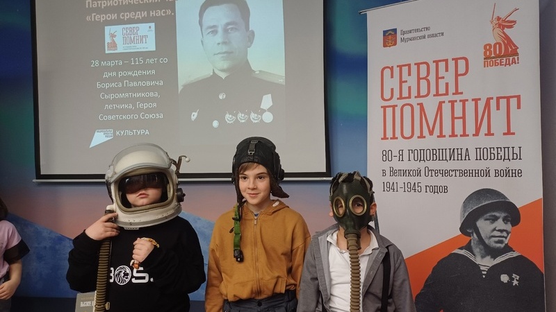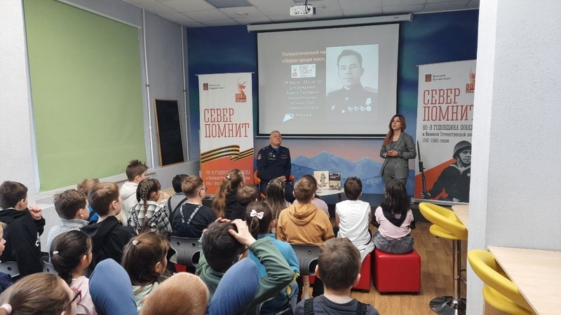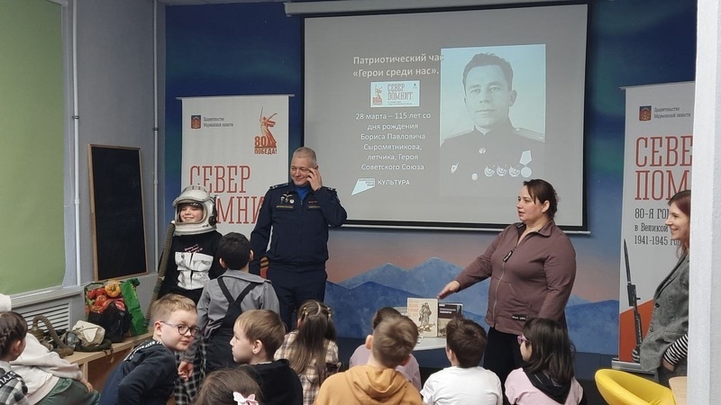 Юным читателям рассказали о жизни и подвиге лётчика Сыромятникова. Также ребята познакомились с книгой «Поединок в снежной пустыне» Захара Сорокина, которая рассказывает о подвиге автора на Кольской земле во время Великой Отечественной войны.