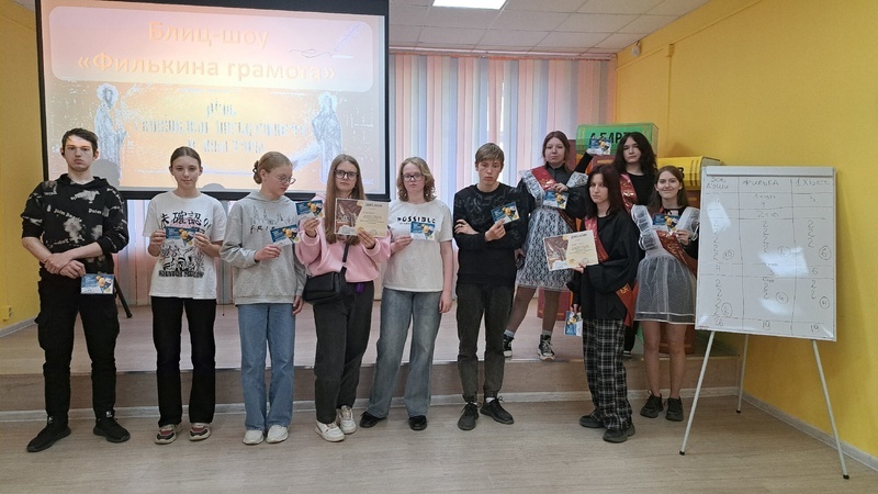 В этот день для учащихся школ города Мончегорска в Центральной детской библиотеке состоялось блиц-шоу «Филькина грамота» по Пушкинской карте. Ребята разделились на три команды и участвовали в различных турах, демонстрируя свои знания, быстроту реакции и способность к командной работе.