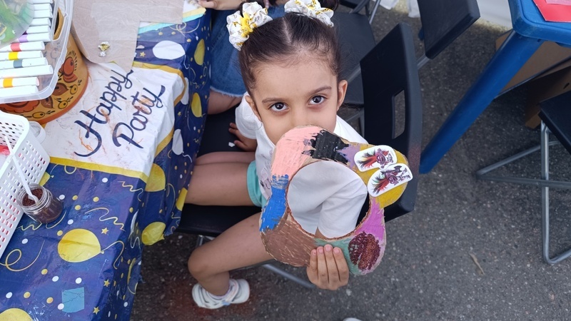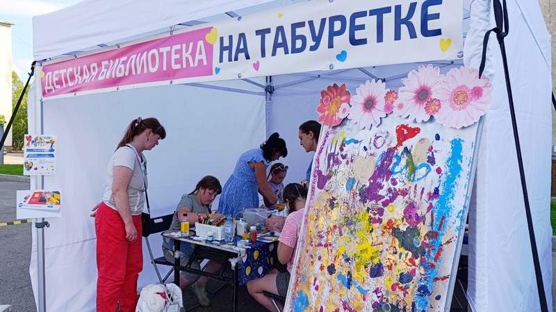 Проявить свою творческую индивидуальность участники также смогли посредством необычных техник живописи, оставив уникальный след на специально подготовленном арт-панно. Особенно это занятие полюбилось детям, которые с восторгом раскрашивали панно игрушками, бутылками, губками и ладошками. Получившаяся композиция станет украшением интерьера детской библиотеки.