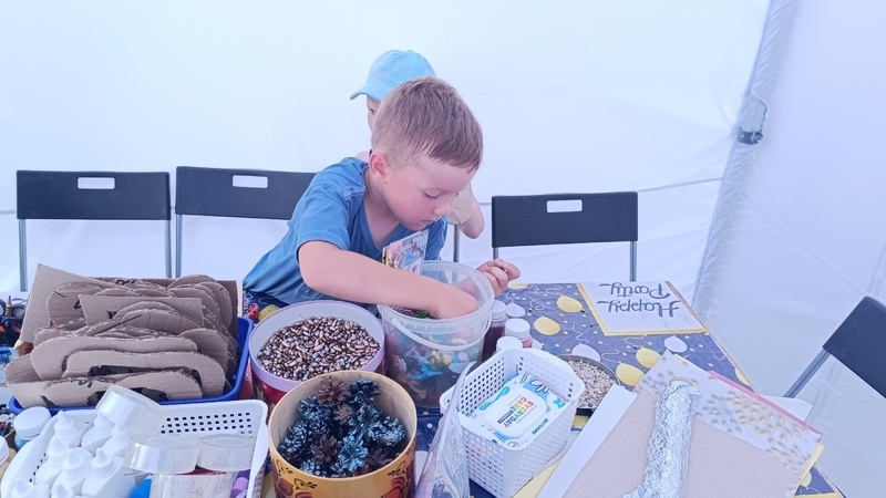 Библиотекой в этом году была организована интерактивная площадка «ТабуреТОЧКА «Чудеса из ничего». Площадка привлекла внимание как детей, так и взрослых. На мастер-классе участники фестиваля создавали из картона невероятные фоторамки. Ребята и взрослые с увлечением украшали их, размещая на них целые композиции из шишек, фасоли, игрушек, пуговиц, песка, камней и многого другого. Такие фоторамки станут отличным дополнением к любому интерьеру.