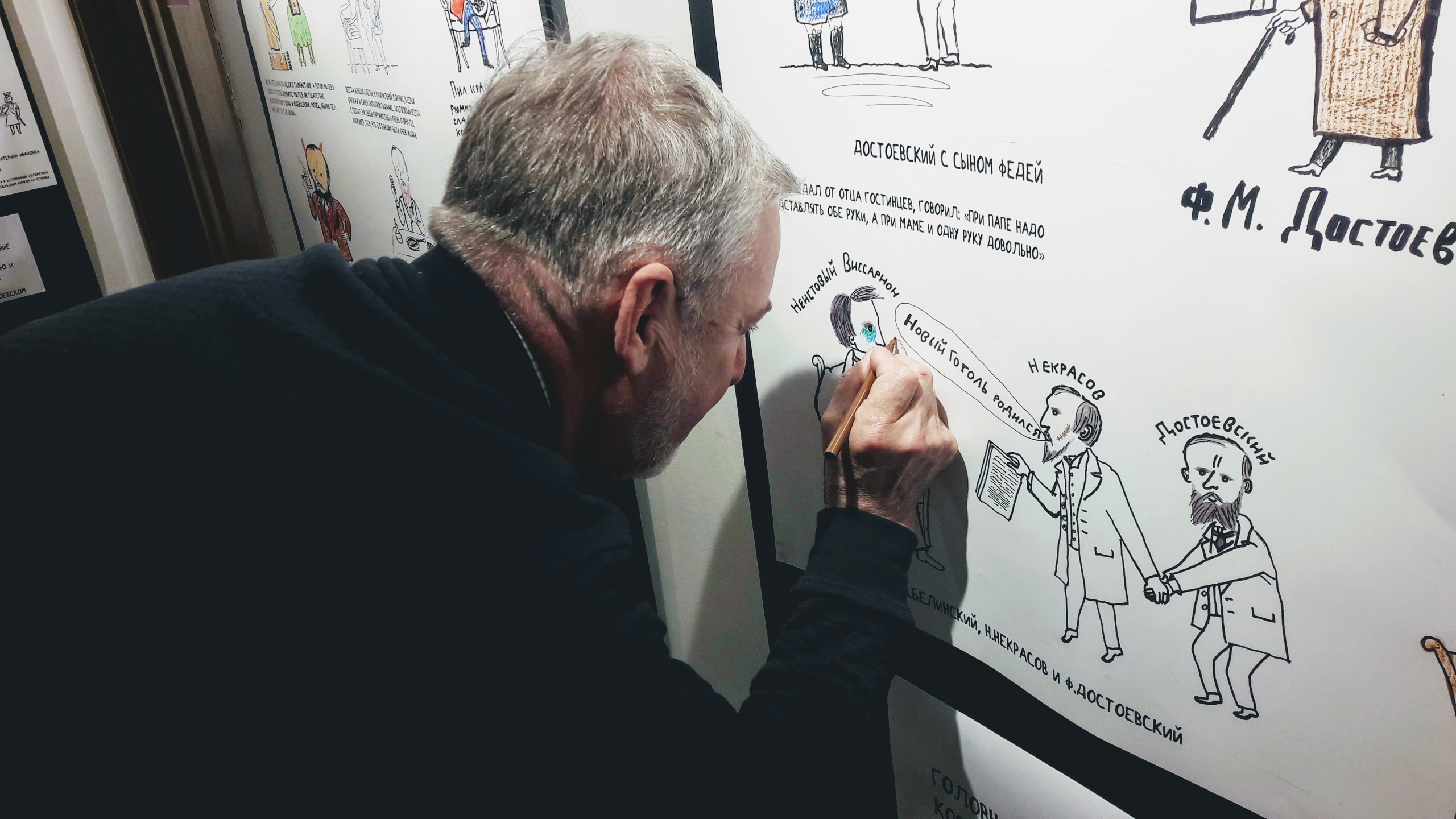 проект «Достоевские раскраски». Мир Достоевского обычно воспринимается в приглушенных, мрачных серо-коричневых тонах, но на самом деле в произведениях Достоевского много разных красок, его Петербург – не всегда пасмурный, его герои одеты в костюмы, соответствующие своему времени и моде, часто яркие и цветные. Выставка приглашает посетителей к сотворчеству – буквально раскрасить мир Достоевского!